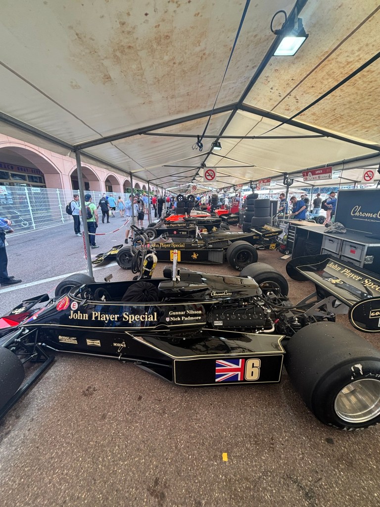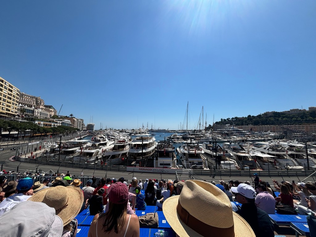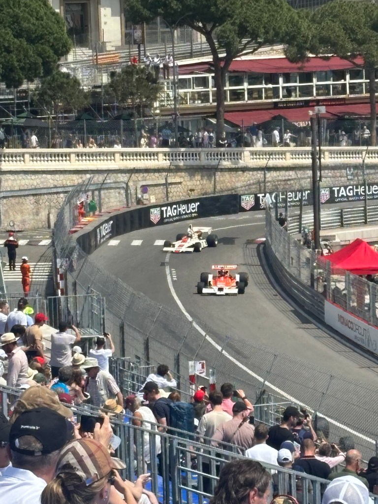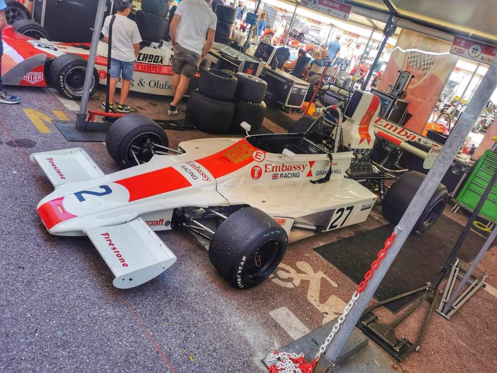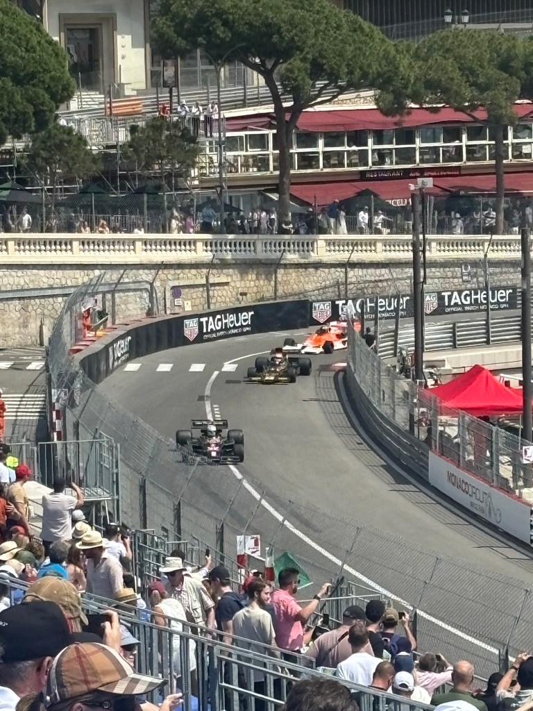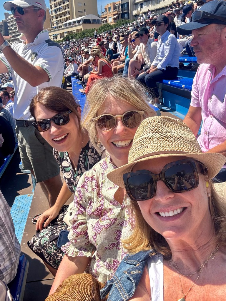 We had lunch booked for 2 pm and as we arrived to sit down at our table, the heavens opened. Due to a couple of bottles of wine and the ability to get the race coverage live on my phone, we watched the last 2 hours from the comfort of the restaurant, where we could hear the action but were in the dry with wine!