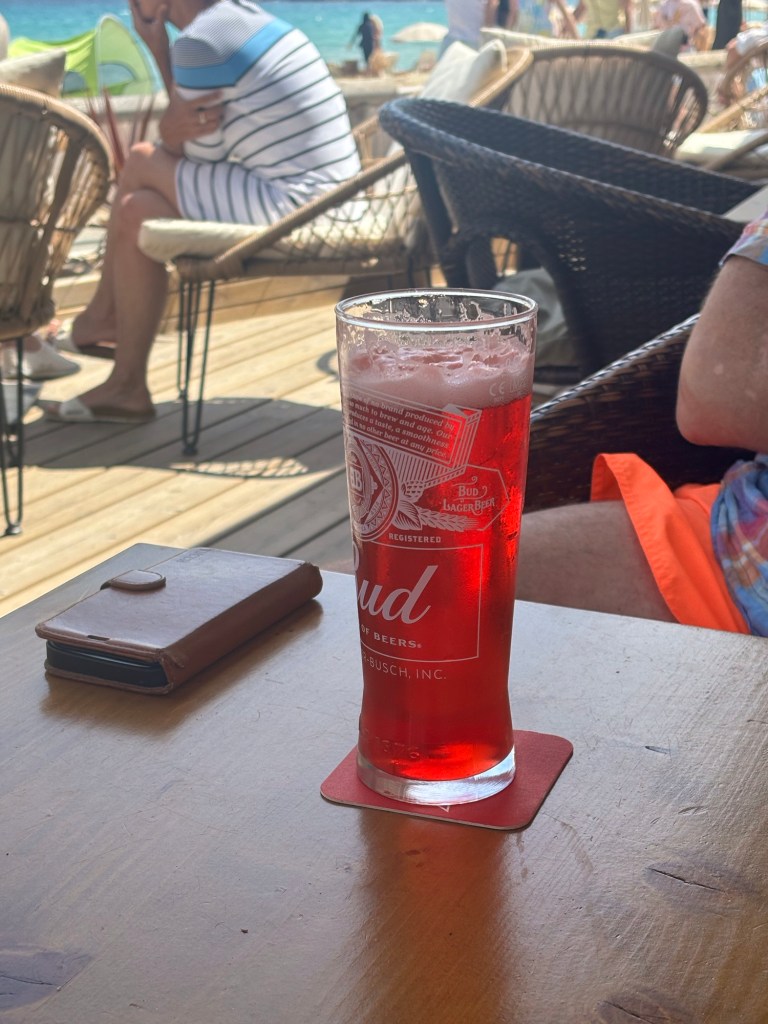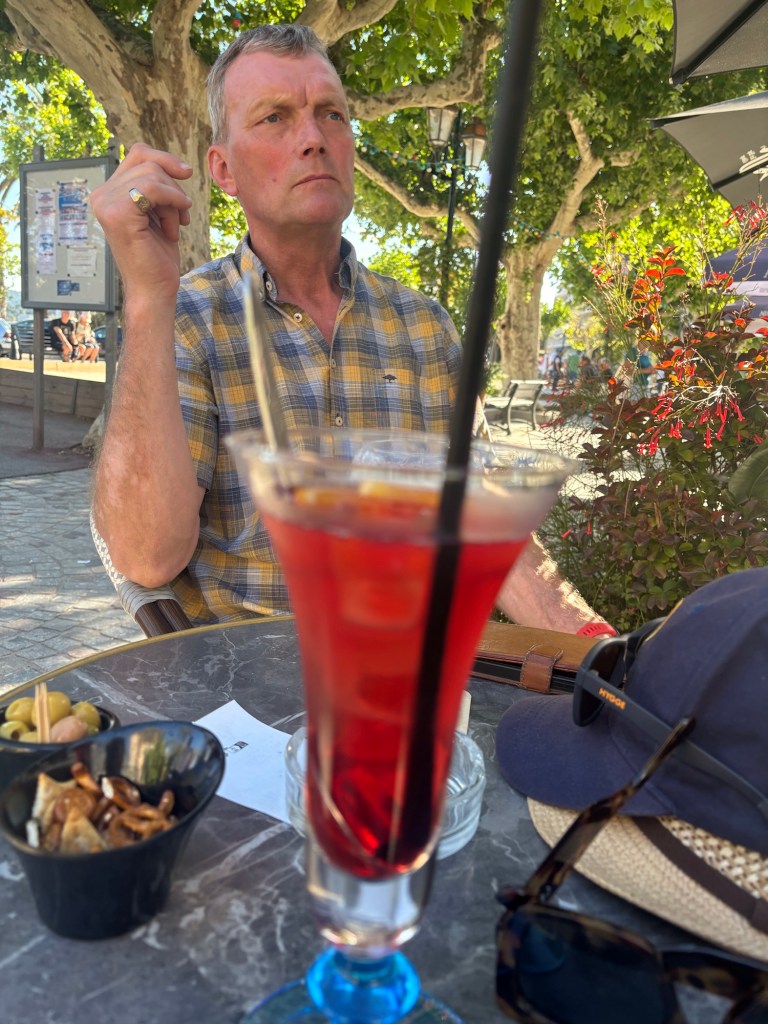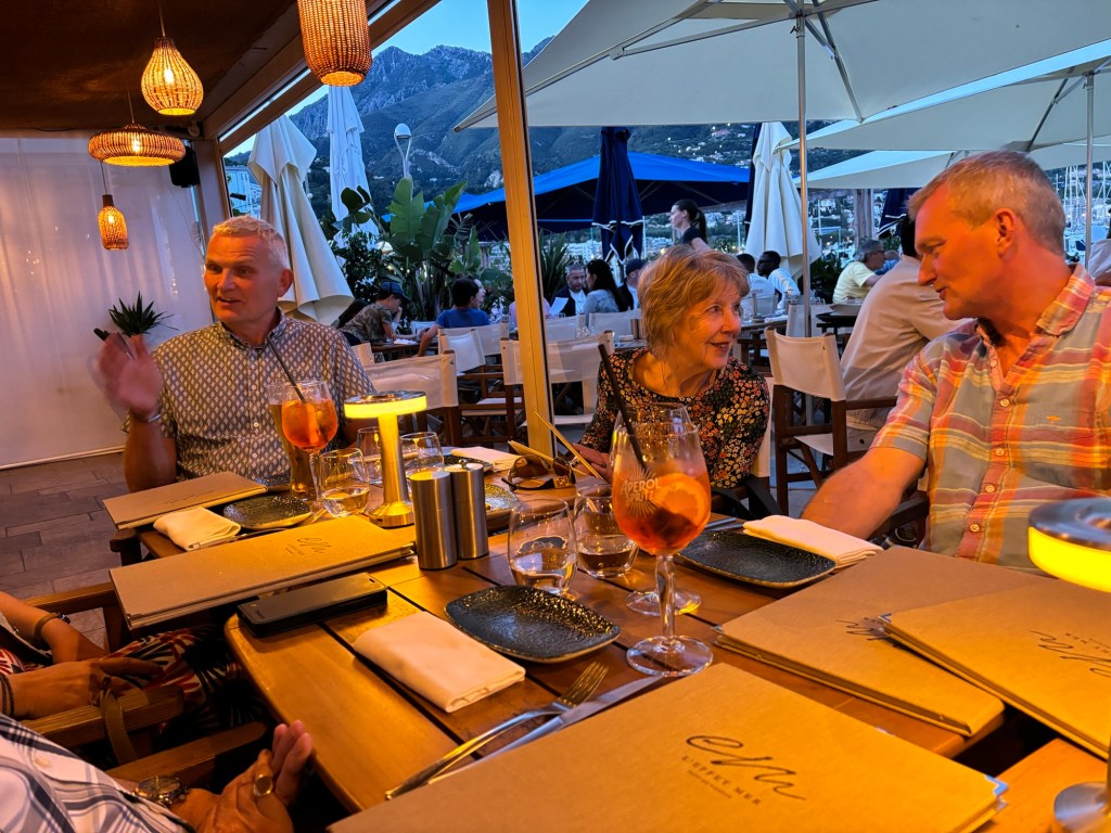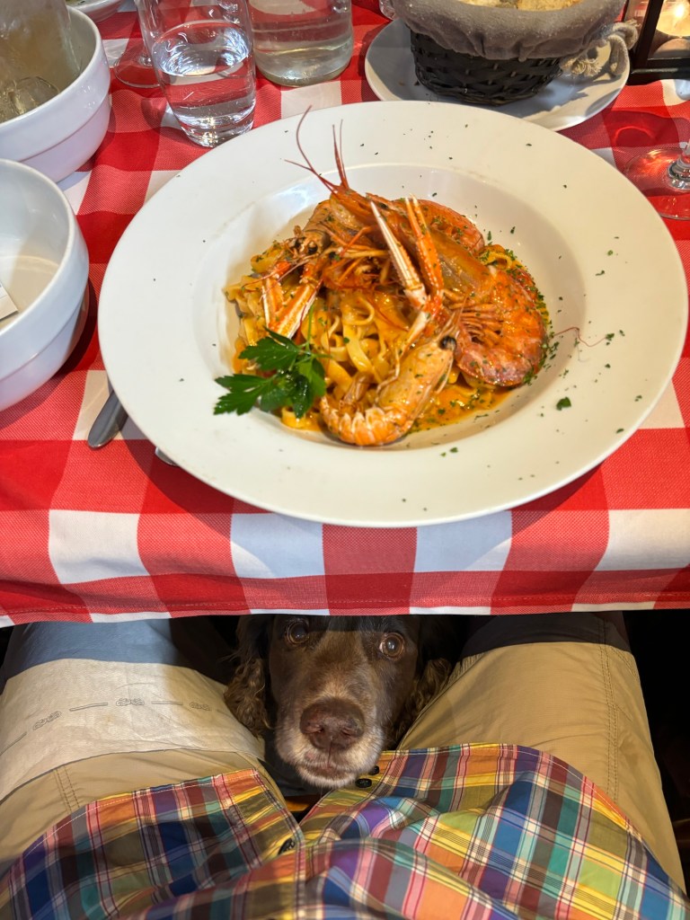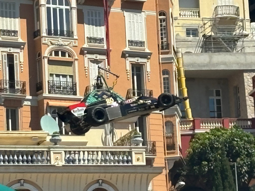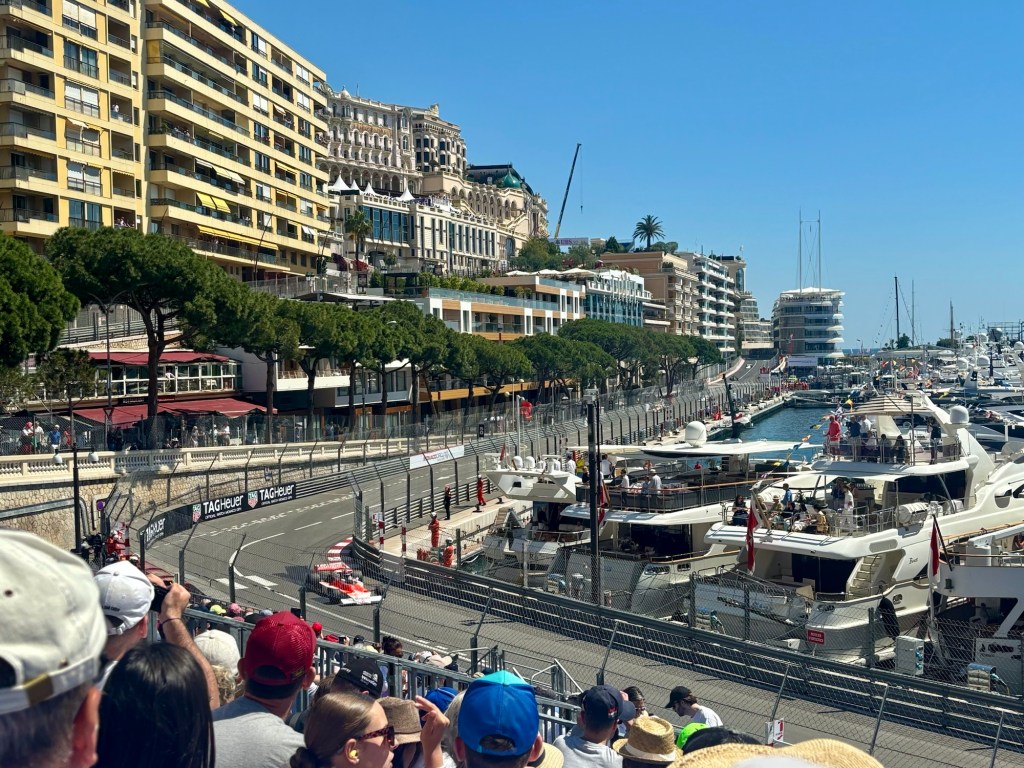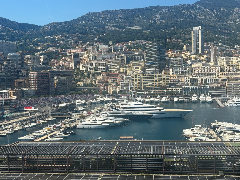 We had lunch booked for 2 pm and as we arrived to sit down at our table, the heavens opened. Due to a couple of bottles of wine and the ability to get the race coverage live on my phone, we watched the last 2 hours from the comfort of the restaurant, where we could hear the action but were in the dry with wine!