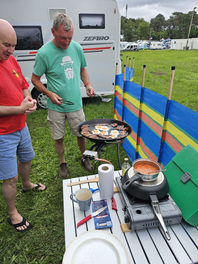 It was an easy start on Saturday, a large cooked breakfast for the boys and then it was time to load up with camping chairs, smuggled beer and snacks to find our place to watch the first few hours of the race. The weather was changeable, dark clouds, blue skies and sunshine… the rain held off for most of the day.