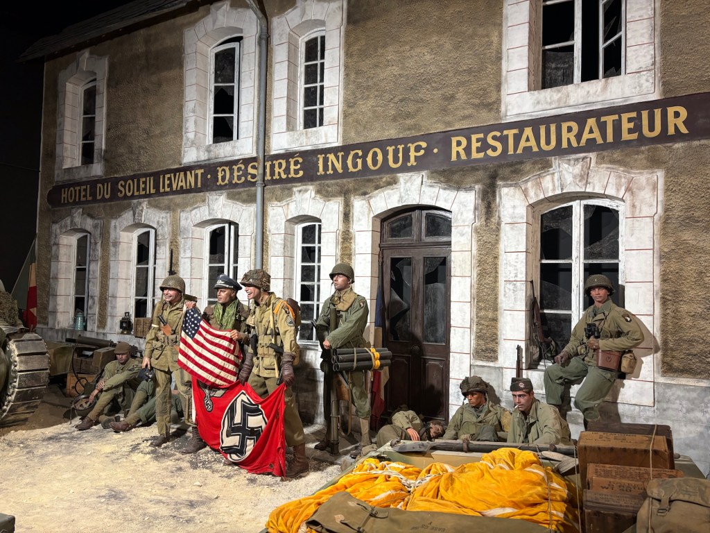 On Monday morning we said goodbye to Nik & Paul as they headed for the Channel Tunnel, whilst we had a leisurely morning, feeding some stray puppies that appeared out of nearby woods and then drove into Le Mans town centre to pick up Olly from his hotel. We were heading home on Wednesday but on the Monday afternoon and Tuesday were returning to Normandy with Olly to visit some of the D-Day sites. Olly had a couple of days off with us, then we were dropping him at Ashford to collect his car to drive home so he could do a quick turnaround before heading out to Spa in Belgium on Monday 24 June for another 24 hour race.
