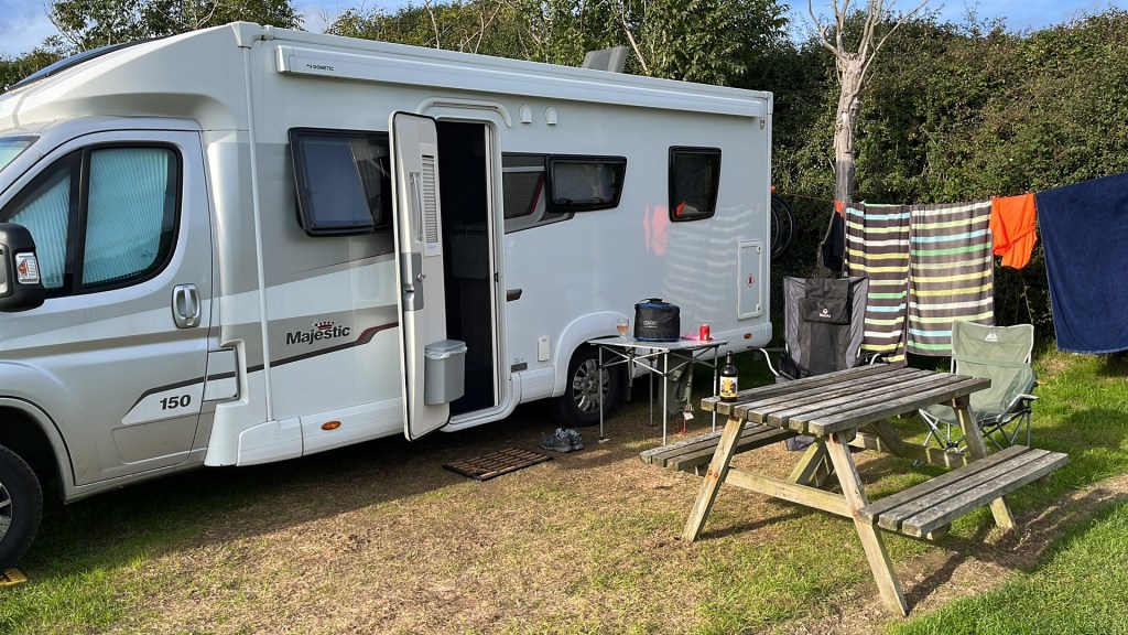 On 6th June, long after the first parachute drop and the first landing craft had hit the beaches in 1944, we had finally woken up to a very chilly, (13 degrees) grey and breezy day. By the time Charlie took a work Zoom call and we had organised ourselves, we didn’t leave the campsite until 11 ish. But we needn’t have worried as there was plenty to see above us.