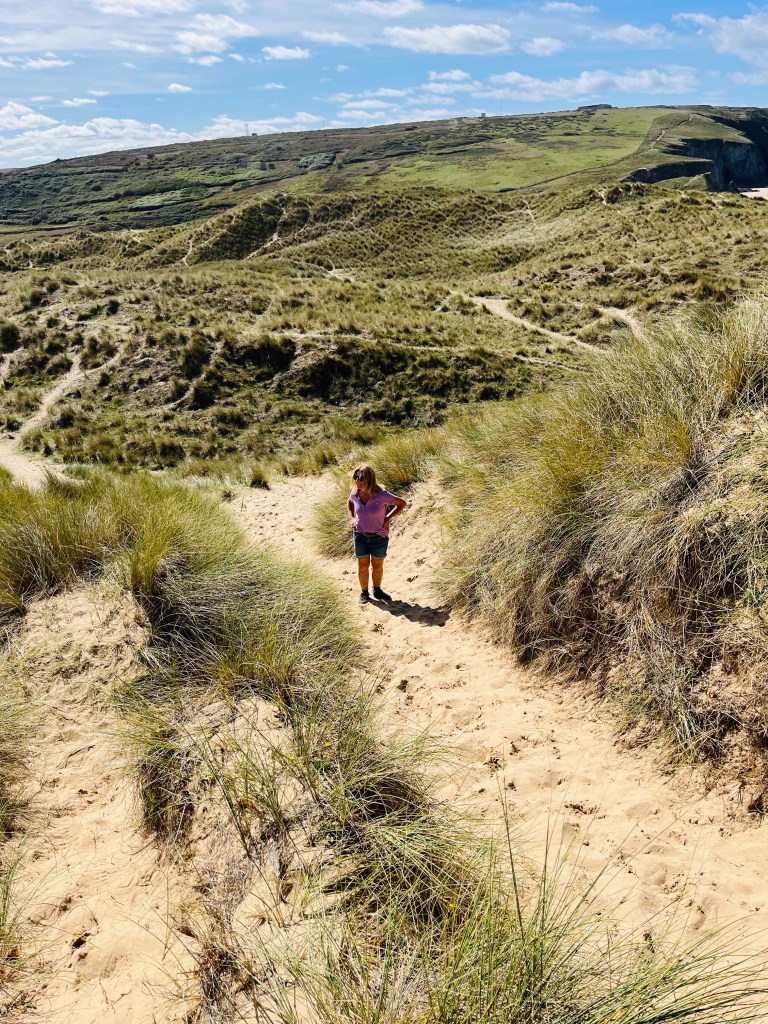 The Coastal Path is very different terrain from where we walked a couple of days ago, gone are the gorse covered cliffs with rocky paths. This area was similar country to the South Downs, rolling grassland and around Holywell, huge sand dunes to climb. The dunes although much more forgiving if you missed your step than the rocky paths, were hard work climbing up.