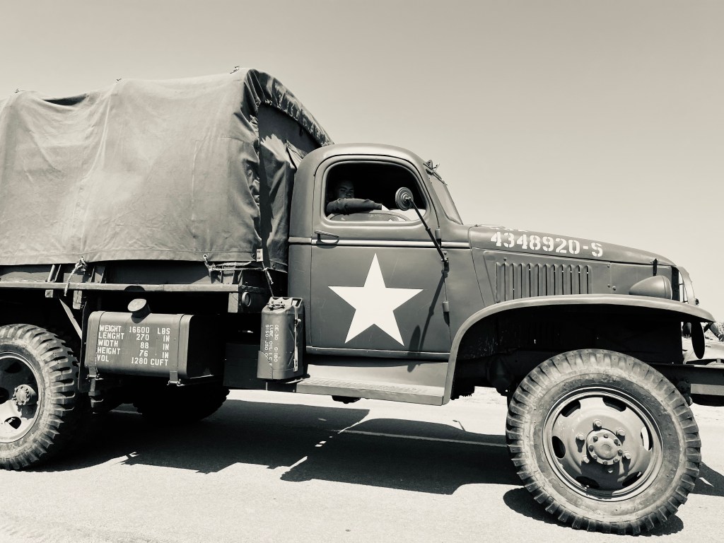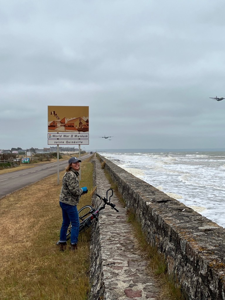 We’ve headed to Normandy to experience what is now called the D-Day Festival for a few days. We are pitched at a very lovely campsite just across from the Utah landing sector and site is full of military re-enactors and their vehicles. We arrived late in the afternoon in the sunshine that was accompanied by the same fierce wind with a real chill to it that we’ve experienced at home over the past couple of weeks. There was haze in the air were sand and dust were swirling around. Sitting lee side of the motorhome was lovely but out in the open, it was cutting.