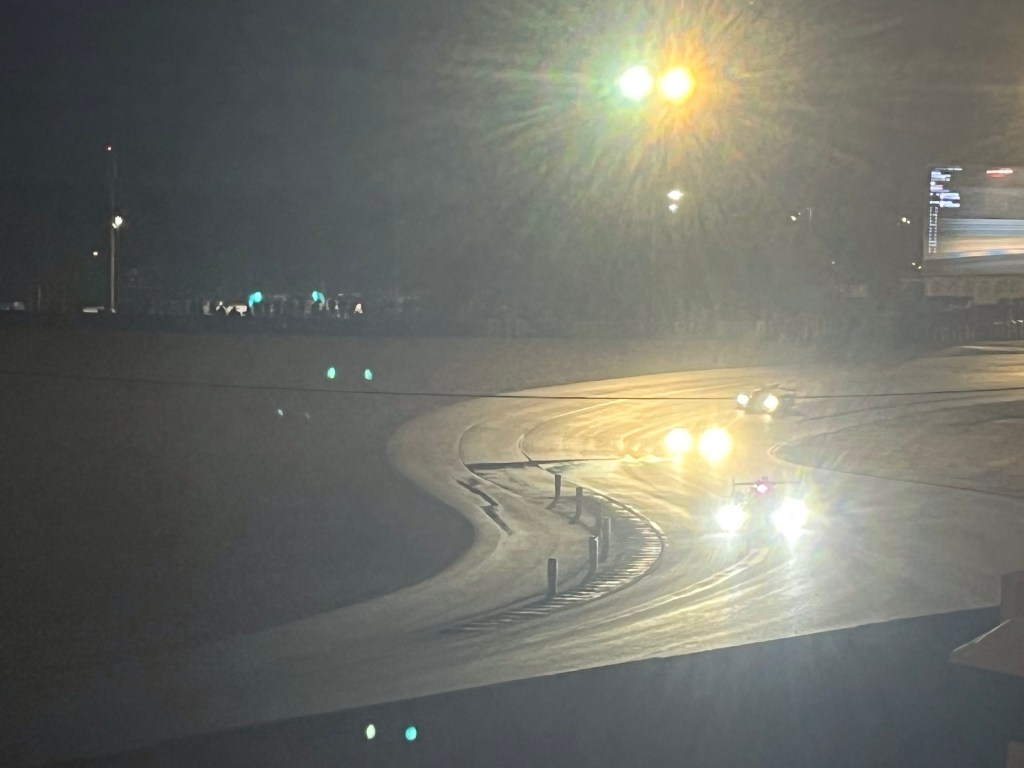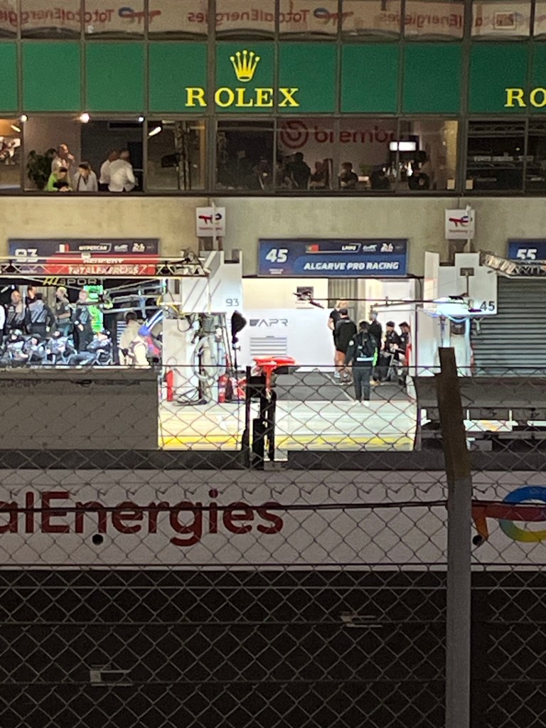Charlie cooked his speciality; paella and as dusk began to fall we headed into the circuit, to watch the Hyperpole, where the fastest 8 cars from each class (HyperCar, LMP2/Pro-Am and GTE AM from Wednesday’ qualifying session, get another opportunity to improve on their time. There was also a night practice session for all cars from 10 pm to 11 pm. In all 62 cars were due to be lined up on the grid for Saturday’s 4 pm start.