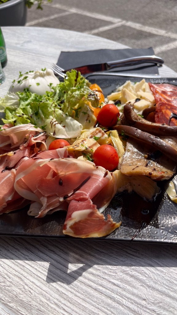 We had the most relaxing time, late mornings, meanders into the local villages to wander through quaint streets, buying more charcuterie and cheese than you can imagine 6 people could eat… We ate out and had the most delicious food, in the unlikeliest places. We walked in the mountains at what will be Greg and Anita’s nearest ski resort and again lunch was delicious.