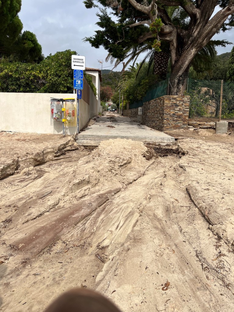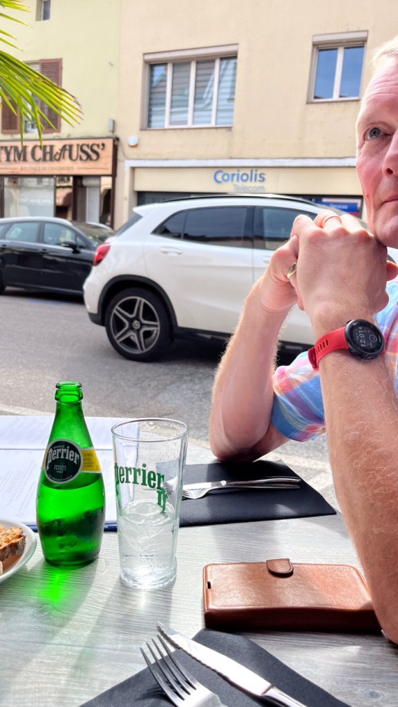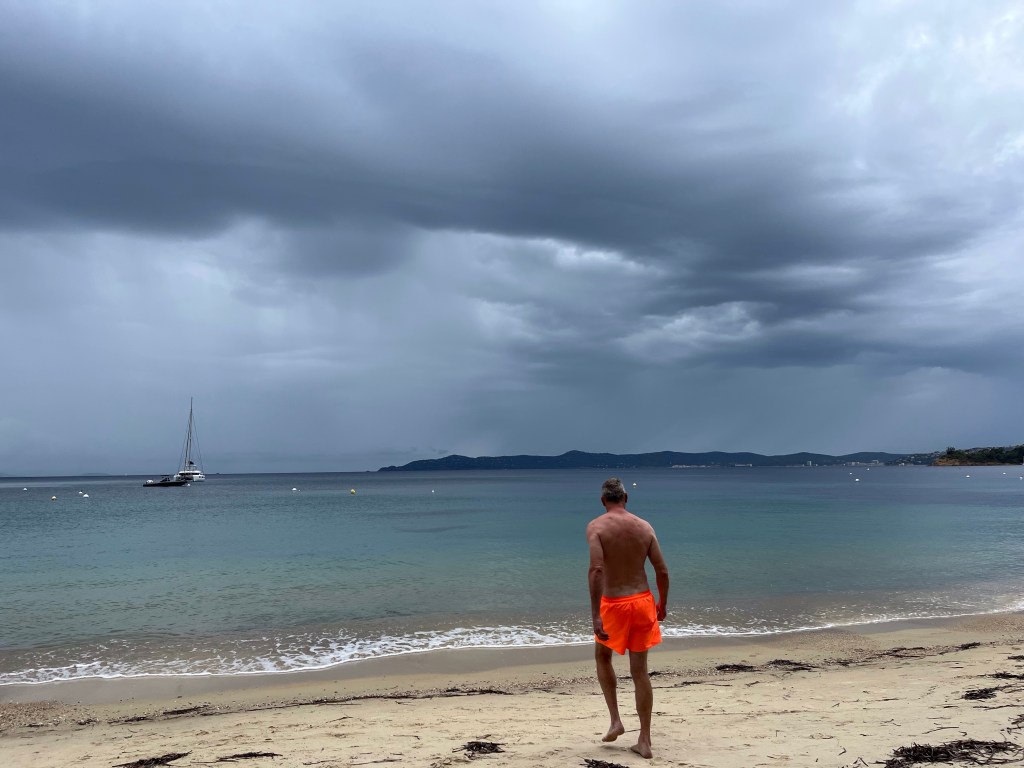 We arrived back at Cavalière, ready for swim. The beach is just across the road from where we are camped, so takes about 1 minute to get there. The sea was quite rough due to strong winds but refreshing. The beach is just over 1km long and has a lifeguard station which covers one area of the beach. As we were drying off, a lifeguard came up, having walked from the other end of the beach, to tell us it wasn’t safe to swim, not because of the waves, but after the storm, the storm water run off meant the sea failed their bacteria test. Our old eyesight hadn’t seen the red flag flying much further up the beach!
