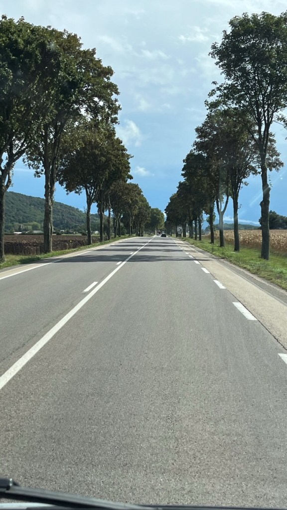 The wood was crisscrossed with wide tracks, and our track led straight into the wood, where just a few meters in, we came across the chasseurs. Each on his stand, dressed in bright orange to stand out in the green wood. Luckily Charlie and Oliver were wearing bright clothes, I was wearing my Barbour. Oliver approached one of the huntsman, who didn’t speak any English, but who directed Oliver to a man further along the line. The hunter spoke a little English and again with the help of Google translate, Oliver ascertained that he didn’t know where the memorial was but we were in a very dangerous place and should go back the way we came, as there were hunters spread throughout the wood line, waiting for the deer to come through. Apart from some distant shots and sounding of a horn, we didn’t see any more hunters or deer until we were back at our motorhome.