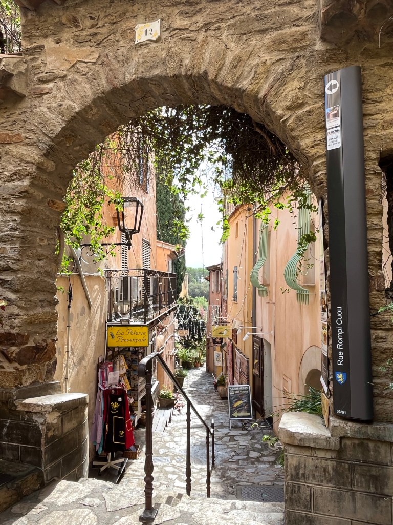 By 10 am the weather had calmed and we had another window of opportunity to explore further afield. We decided to head for Bormes-les-Mimosas, a medieval hill village known for its quaint streets filled with flowers.