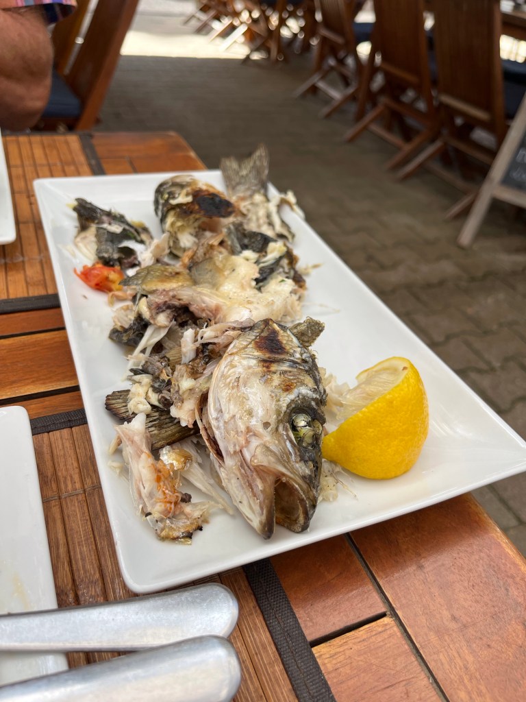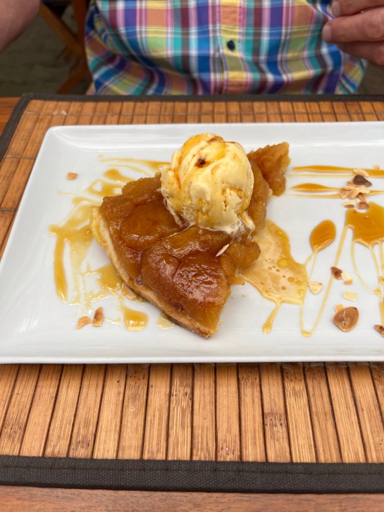 We had a fab lunch of grilled sea bass, followed by tarte aux pommes, only remembered to take a pic after we had devoured the sea bass, so …