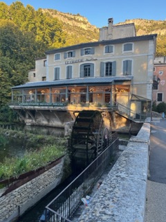 Our ultimate stop was Fontaine-de-Vaucluse, the source of the River Sorgue. The village is squeezed into the narrow end of a valley where the deep and mysterious spring is located. Apparently Jacques Cousteau sent a submersible down to find the bottom, with no luck, later a probe got down to 308 metres but the spring goes deeper. Apparently all the rainwater from the Luberon and surrounding mountains come out of this one Spring.