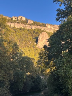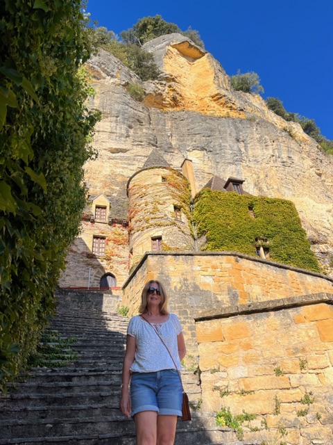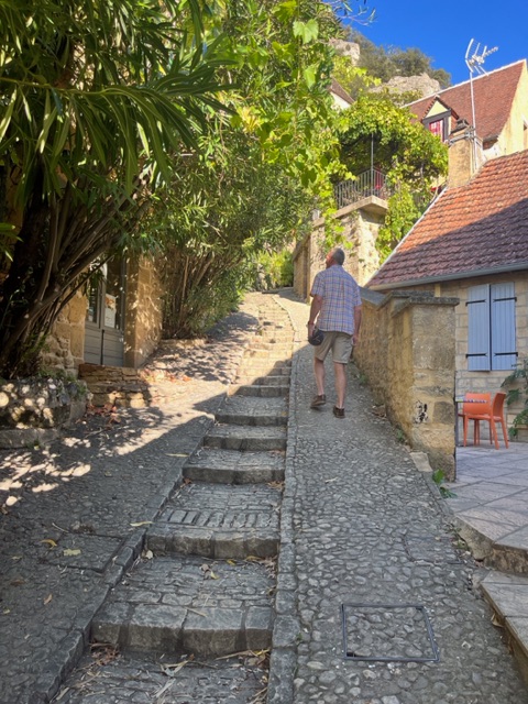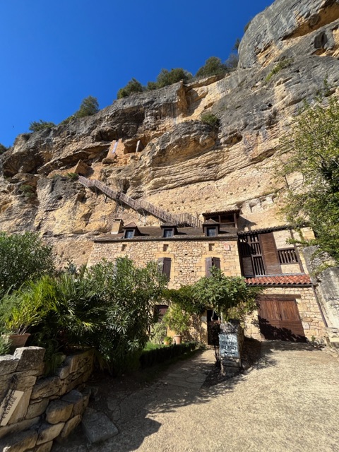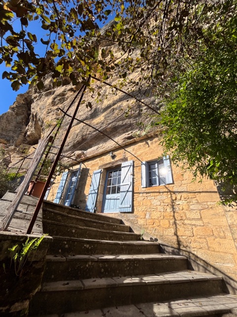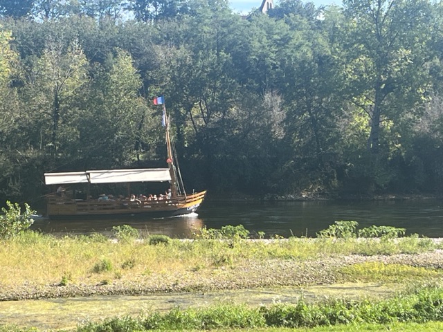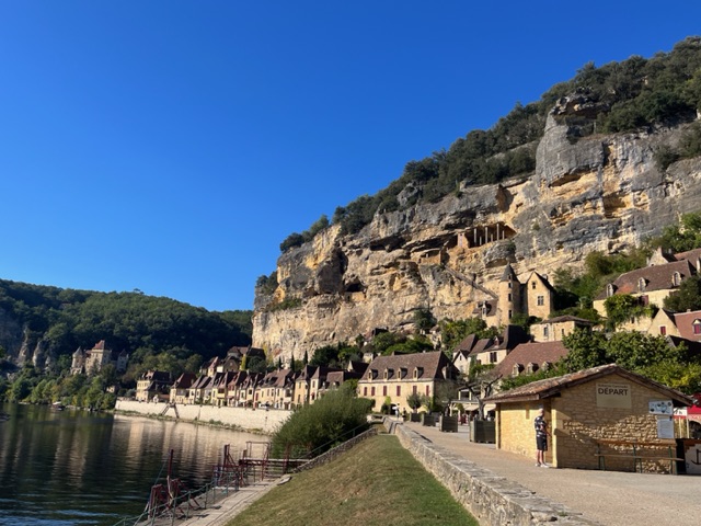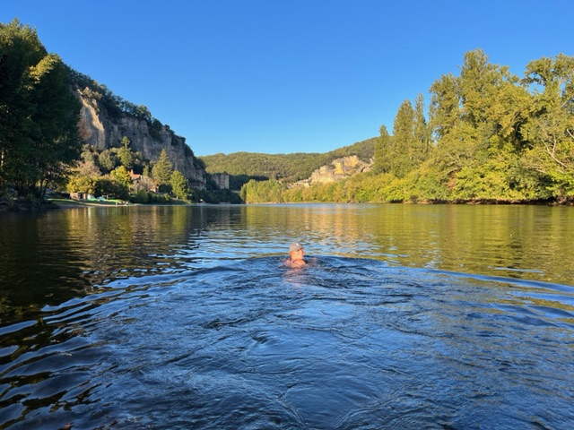 Our next stop, after saying our farewells, was the Dordogne and La Roque-Gageac. It was a 3 hour drive, with the last hour up twisty, winding roads. The scenery had changed as we approached a dramatic rocky landscape with Dordogne winding its way just under the cliffs. We took a chance on a campsite, just 2 minutes from the village on the riverside. Our pitch was next to the river.