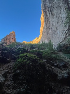 We unloaded the scooter and drove along to the village, parked up and explored the couple of streets that nestled directly under the cliffs. It was a baking 30+ degrees, and climbing up was hot work. We decided against the 7 Euros each, to go higher to explore the old fort, it was a step too far…