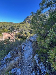 The next morning we climbed up to the ruined fort above the town. Apparently it was a steep walk with a marked path, however after the first sign, it was every man for himself, the path petered out and it became a scramble/climb up to the ruins. However the views were spectacular and we picked up a hiking trail which took us back down to the village back through the forest and into the valley through the vineyards.