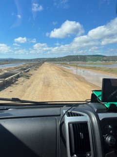 It had been raining softly most of the night, but not enough to wake us up! All the roof vents were open but they are angled so water doesn’t pour directly into the motorhome, however as the breeze got up and the rain got heavier, it was coming in. So a mad scramble at 3 am to shut vents and mop up.