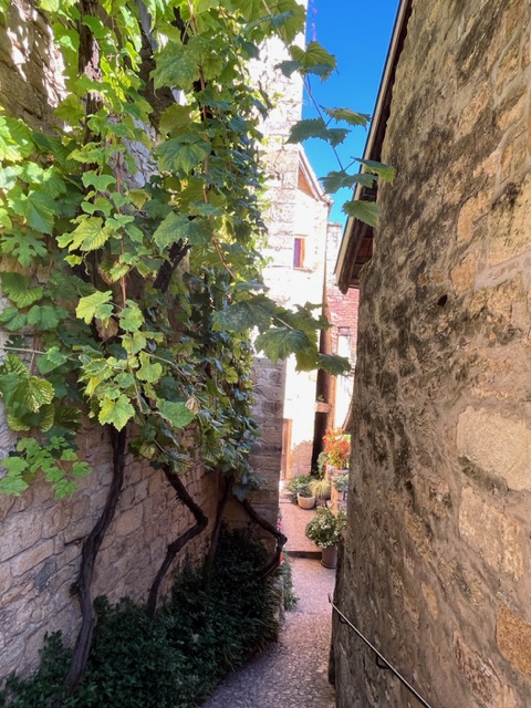One advantage of going at the end of the season is that, although there are still many visitors, as you can see the tiny medieval streets were not crowded, I can imagine in the heat of high season, this little town would be packed and it would difficult to enjoy a stroll through ‘The Trail of the Empty Handed’ (where hunters who came home empty-handed snuck back into town), Isle of Love Square, Break-Your-Butt Street, Fig Tree Square, Lovers’ Alley or gaze into The Well of Love. All street names translated on the Tourist Office map!