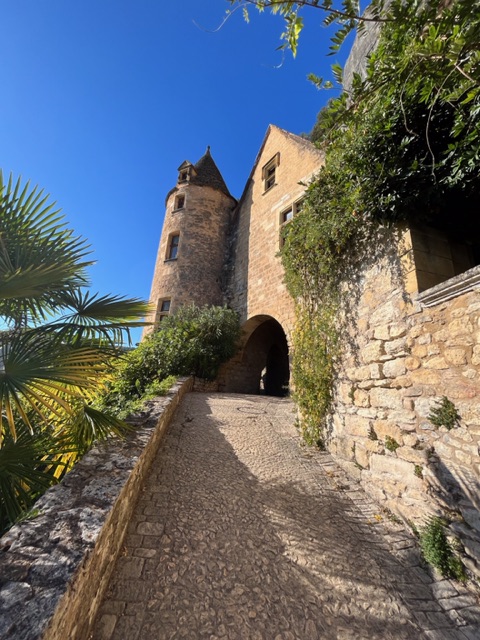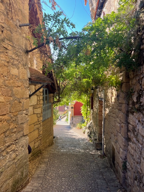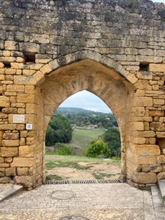 Today was much cooler, still a balmy 23 degrees, but more cloud cover and a breeze. Our trip today was to the village of Domme in Dordogne valley. Domme is a medieval village perched on a hill overlooking the valley and the river. It is a fortified town built around 1281 and has been labelled the ‘most beautiful village in France’. Many of the fortifications , such as the ramparts and entry gates are still standing. The scooter made it so easy to visit and being October, there were a handful of tourists, rather than thousands wandering through the cobbled streets. There are advantages to visiting this time of year, but the downsides are not so many bars or restaurants open and some attractions have already closed for the season or have more restricted opening times. We had hoped to visit the cave, which is apparently very impressive but they didn’t open again ‘til 2.30 pm and we had places to go!