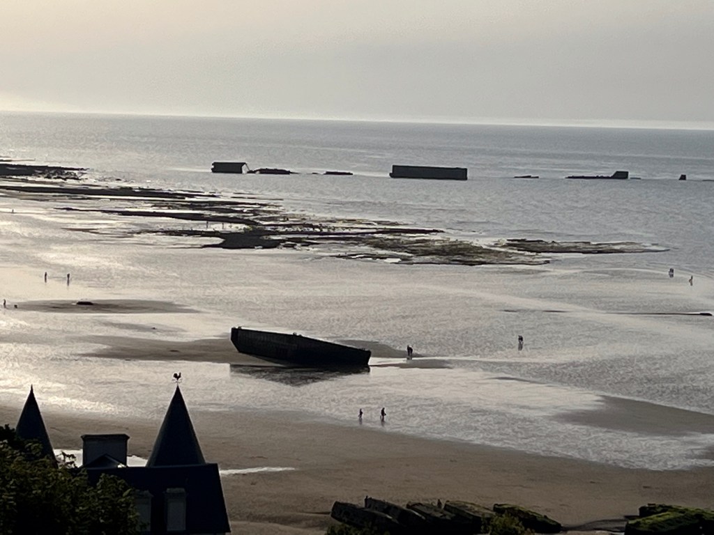 Our overnight stop was on the cliffs above Arromanche, next to the D-Day 75 Garden and with a great view of the remains of the Mulberry Harbour.