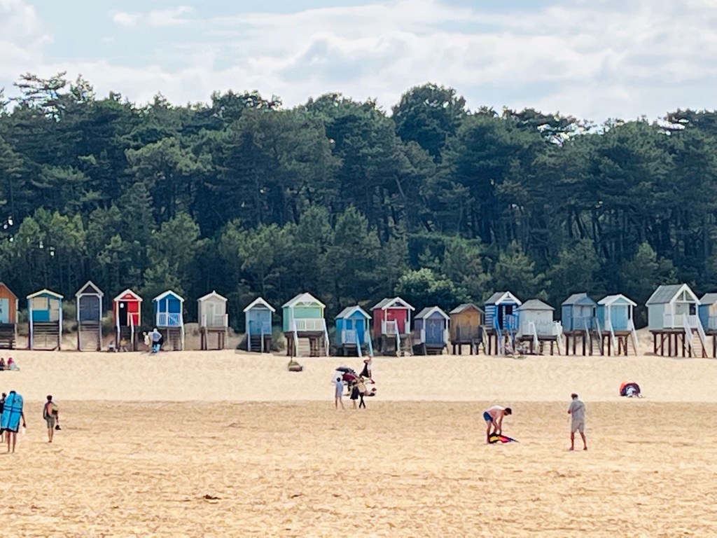 We then cycled out to the beach which is about a mile from Wells, parked up and walked along the beach. The beach is vast, backed by a pine forest, planted by one of the Earls from Holkham to help stabilise the dunes, you see, I said the Coke family were at the forefront of ecological innovation. The beach is lined with gaily painted beach huts and goes on for miles, it is huge and sandy and links up with Holkham Beach along the coast.