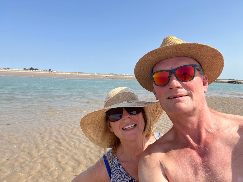 Again although very warm, the breeze was still heavily gusting, and once we had parked up the bikes, we then had the long trek to the sea. The wind whipped up the sand providing free exfoliation and after another long walk into the sea so we could actually swim, we lay on the beach for 20 minutes. But it started to feel like a trial to lie there whipped by the sand, so we began the long walk back to the bikes. We felt really sorry for any families with small children, after a long day on the beach, a 30 minute trek back to the car, isn’t great for hot, tired and hungry toddlers.