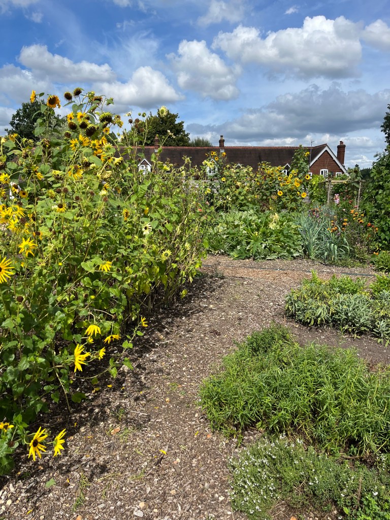 The next morning was clear, hot & sunny but still with a strong gusty breeze. We cycled back into Wells for provisions and once back at Holkham, we cycled to the 6-acre Walled Garden. Although the recent high temperatures had taken its toll, as with most people’s gardens, it was still a beautiful mix of flowers, vegetables, herbs and exotic fruit.
