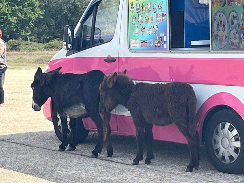 Bank Holiday Monday, we embarked on a whistle stop tour of the New Forest, in Jim’s car. We visited Lymington, Brockenhurst via Sway, out to Rhinefield to drive down the Ornamental Drive, populated by Giant Sequoias & Redwoods. Then we went to Stoney Cross, a former WWII RAF & USAF base where we joined the queue behind the donkeys for an icecream!