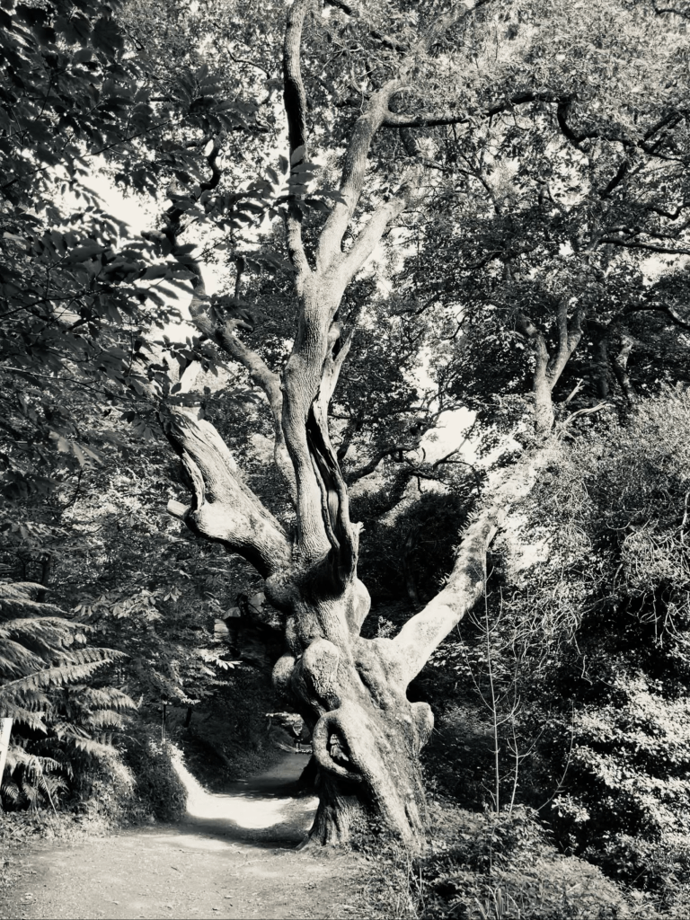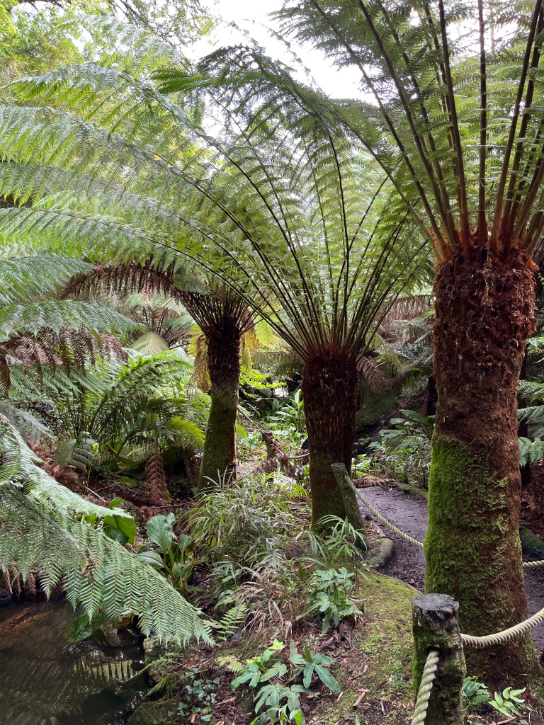The formal and kitchen gardens are only a small part of Heligan, the majority of the grounds are taken up by walks down the wooded valley, past a wildflower meadow to the Jungle area. The wooded area has lots of willow sculptures, some adorned with fairies, hidden amongst the trees. My kind of art, I’ve decided. I loved the Jungle area, there is something so primeval about the huge ferns. You could easily get ‘lost’ in the valley and Jungle areas and we spent a good couple of hours walking up, down and across the steep valley.