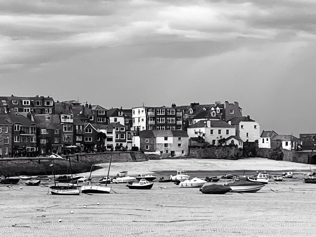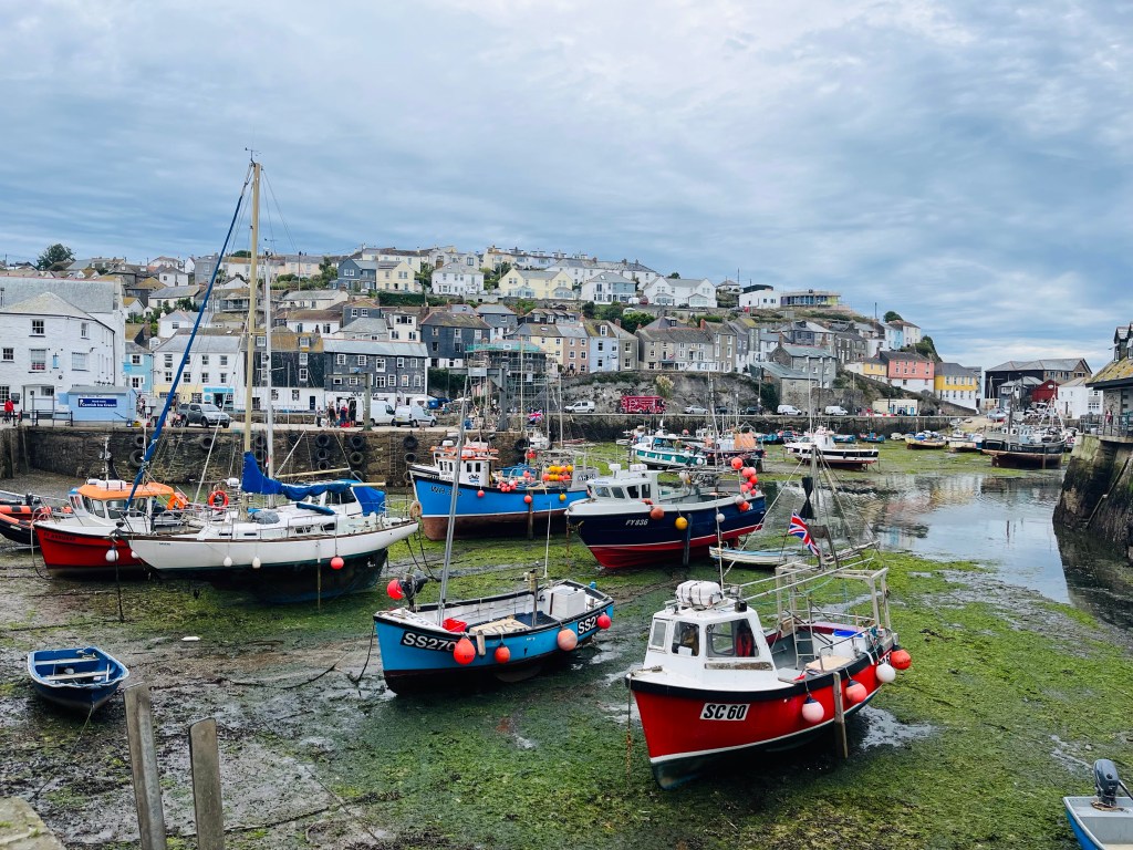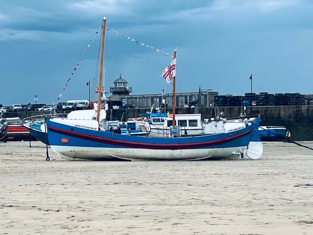 Today we were on the road for a bit, navigating our way around Cornish roads in a 7m motorhome requires a little bit of planning. We parked above St Ives and then walked into the town. We walked around the town and the harbour. The tide was out, so we could walk amongst the boats.