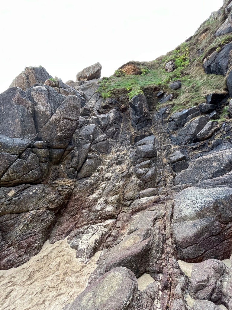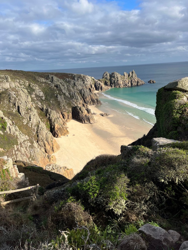 Our campsite was a field in Treen, with views out to sea. We packed up our rucksack and made the 20 minute walk or should I say, scramble down to Pedn Vounder Beach. The path first follows the coast path and then literally it is a scramble down a steep path then a climb down the rocks to the most beautiful beach.
