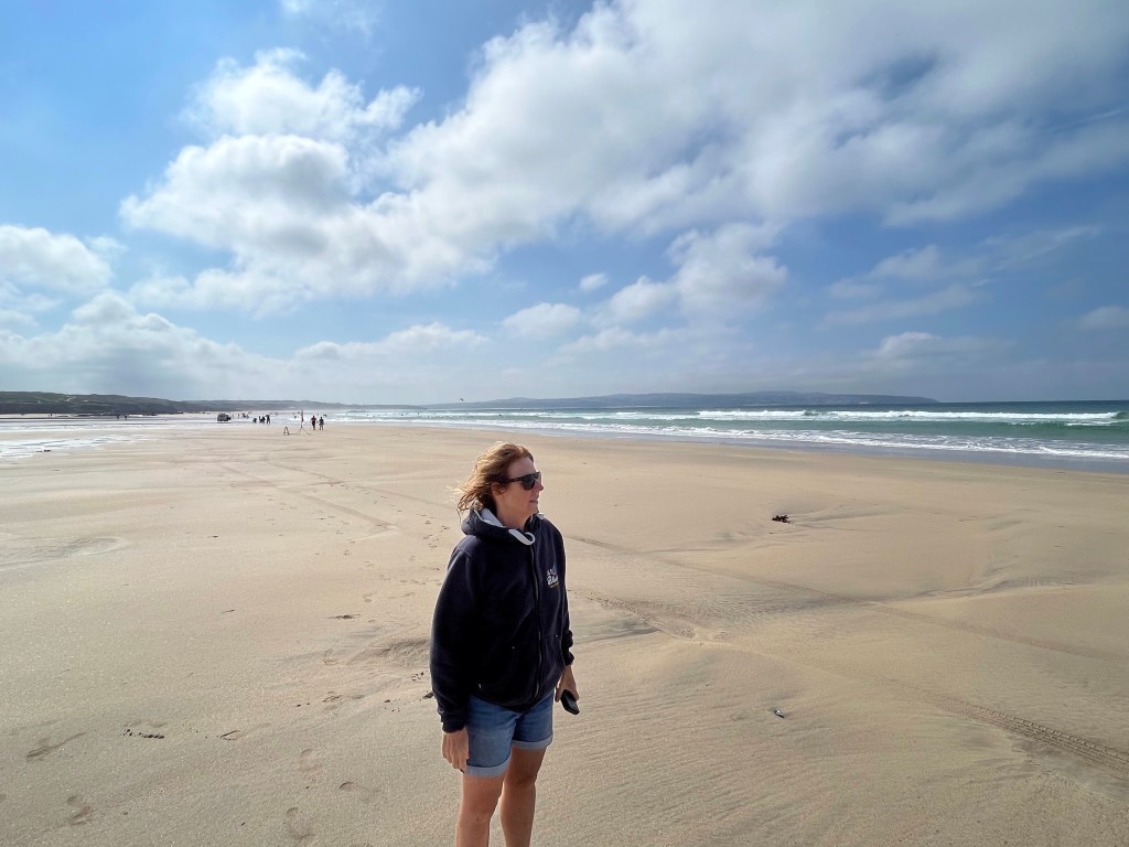The next morning we had a long lie in, waiting for the weather to clear. We were a 20 min walk from the Gwithian Beach, so as the clouds cleared and the sun came out, we packed a bag and made our way down for a swim.