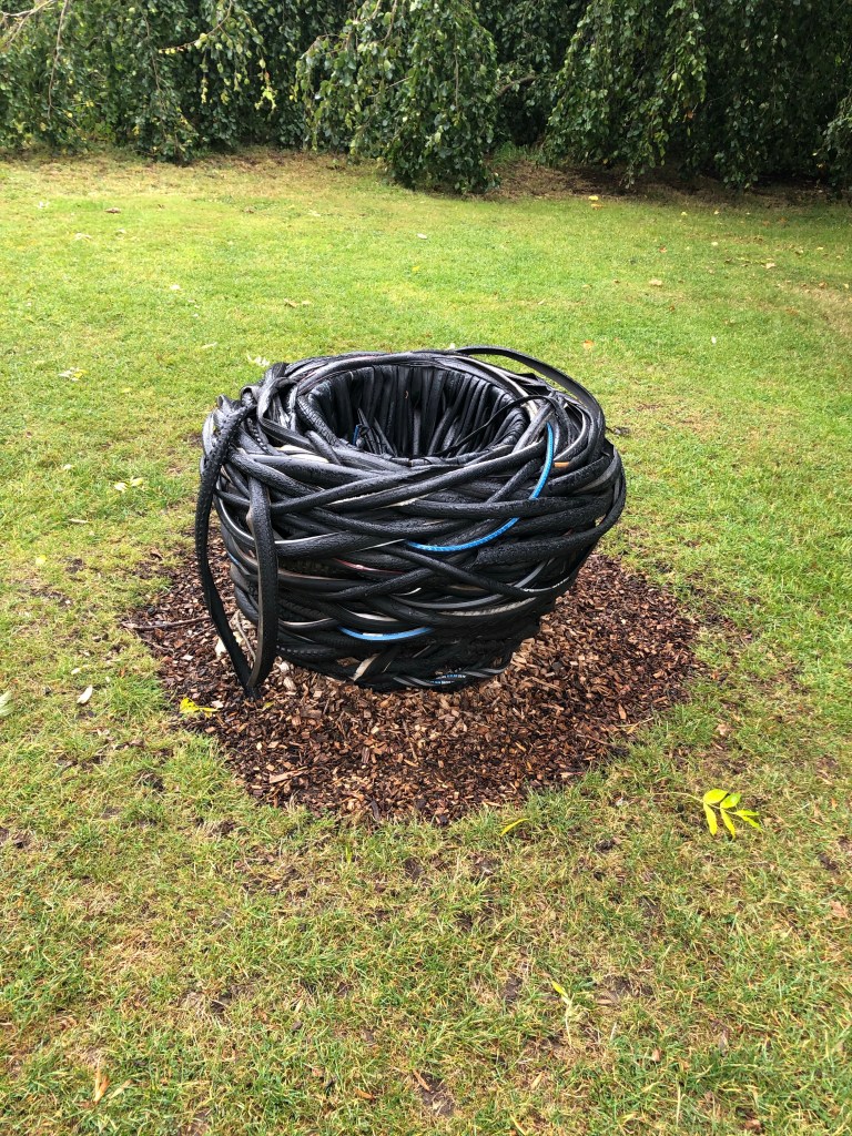 The Garden of Surprises, which is filled with novelty water features may be surprisingly pleasant on a warm summer’s day but as the rain started to fall, the sudden appearance of yet more water, was rather unsurprising. The Sculpture Garden was more interesting, both from a garden point of view and a sculptural one. The best surprise was when a hare just hopped past us, I never realised they were so big… Two hares in two days, even I don’t find that many on my chin in a day|