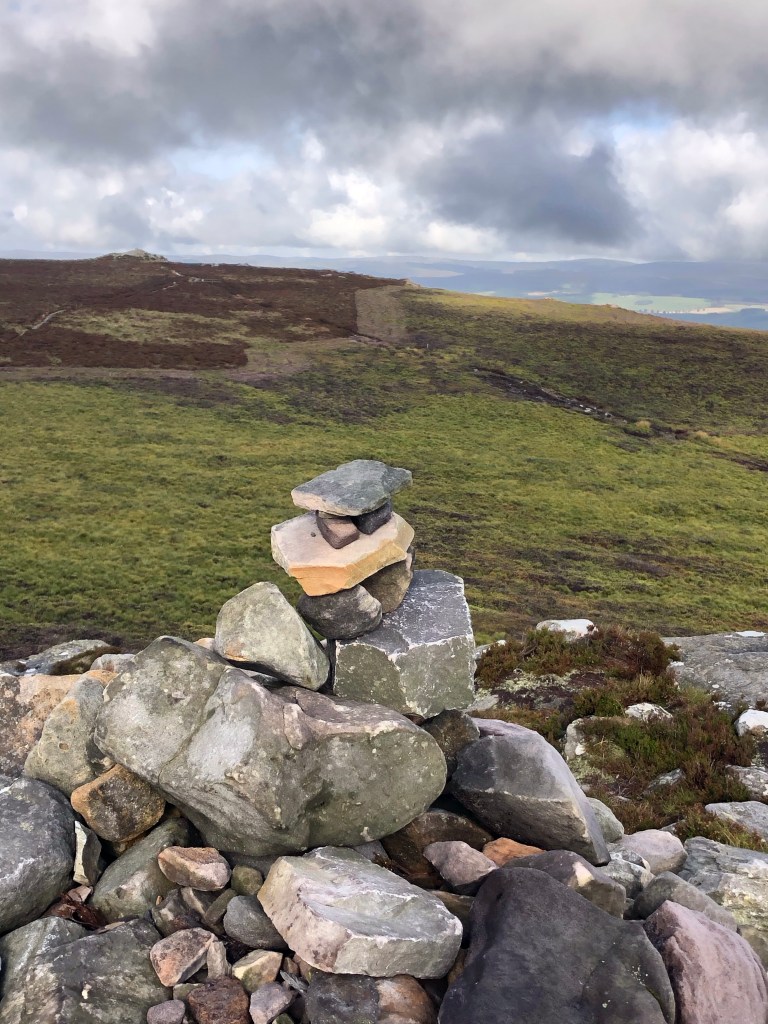 Daybreak revealed a whole new world, blue sky, white clouds and the final hints of purple heather on the hills. We were parked below Simonside, a distinctive ridge, with a craggy profile, that stands guard above Rothbury. A walk up to the top was the order of the day as it gives you a 360 degree view encompassing the Cheviot Hills and North Sea coastline.