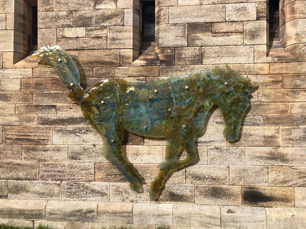 A glass horse Artwork on the castle’s wall