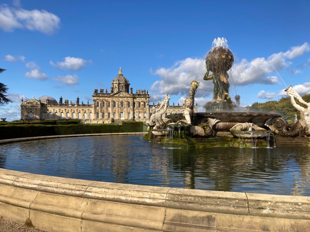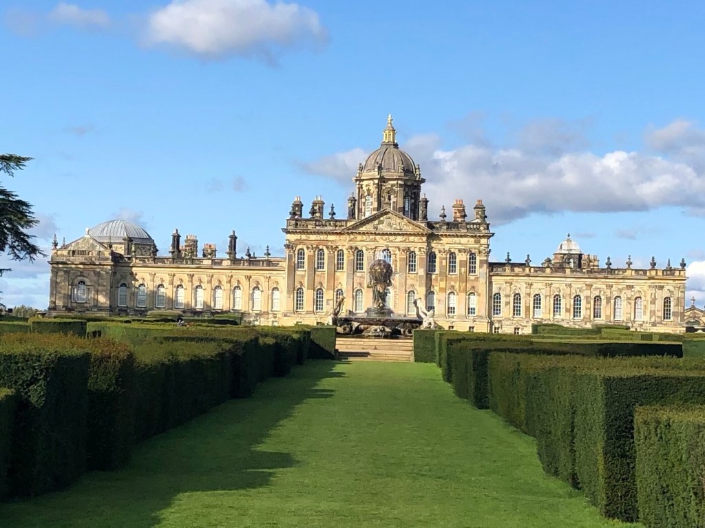 Having been very impressed by Cragside and Bamburgh, I soon realised Castle Howard was a whole different ball game.. Cragside, a place that invites long walks wrapped in tweed and stout shoes, very Queen Mother, followed by hot chocolate or a stiff brandy. Bamburgh is more rugged, a place that evokes stormy seas, windy beach walks, huge roaring fires on the beach with bowls of thick beef stew and hunks of bread, but Castle Howard just oozes elegance and glamour, champagne, candlelit dinners, riding side saddle through the grounds for a picnic at one of the many buildings on the estate. Castle Howard screams look at me and my MASSIVE wedge. It must have been built to impress and intimidate, as the Howards were a powerful and influential family, wannabe king makers and breakers.. Castle Howard was used as the location for Brideshead Revisited, but no sign of Aloysius…🧸